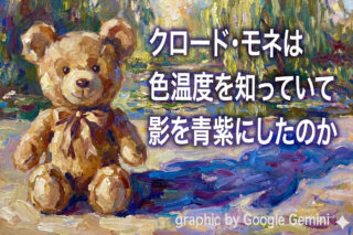 ライティングTIPS 印象派の青紫の影と色温度について考える。モネは色温度を知っていたのか? 油絵や美術に興味のある人なら、クロード・モネを始めとする印象派の画家が絵を描くとき、影の色を青や、青紫色で表現していたのはよく知っていると思います。記事の案を練りながらGoogle Geminiと会話している時、面白い実験の話題になりました... 2025.12.01 ライティングTIPS