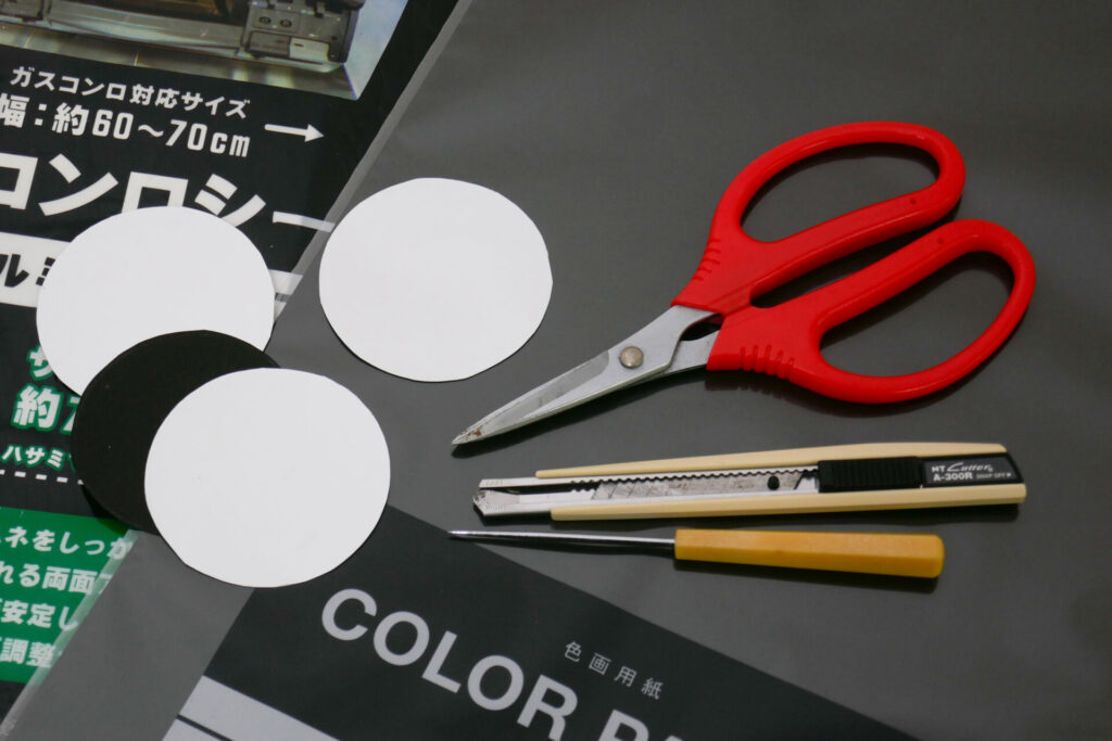 用意するものは、厚手のアルミホイル(短時間や弱いライトなら厚紙などでも可)針、または千枚通し(目打ち)、厚紙です。紙類は光を通さないものを使ってください。
