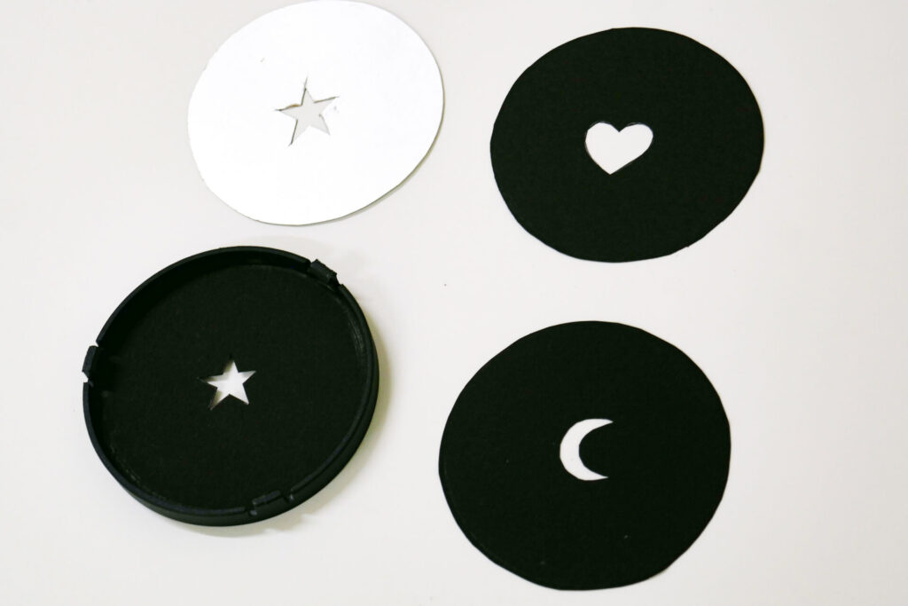 次に光学スヌートのレンズの前にセットする、星型やハート型のマスクを作ります。