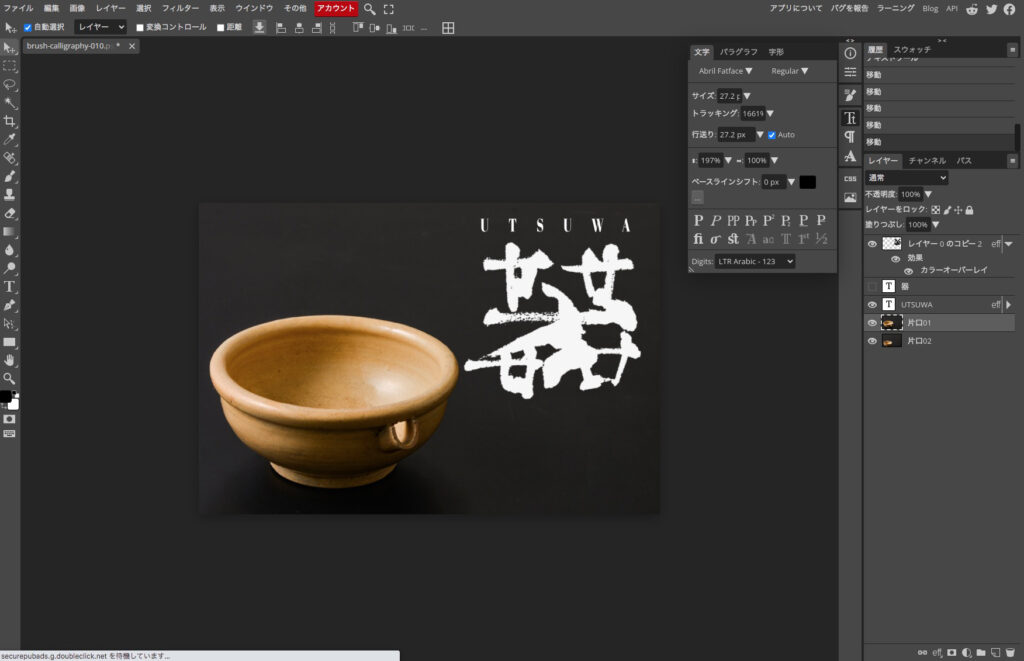 合わせる写真は予め撮っておいた古い陶器です。これに器の一文字を合わせてみたいと思います。