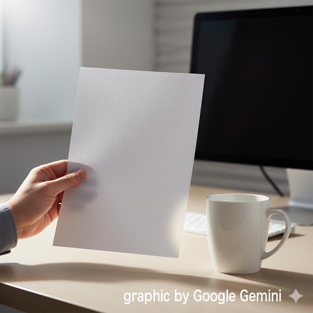 さらに、マグカップのやや暗い部分に白いコピー用紙を近づけてみましょう。多分マグカップが近づけた分だけ明るくなったと思います。これがレフ板を使う意味です。
