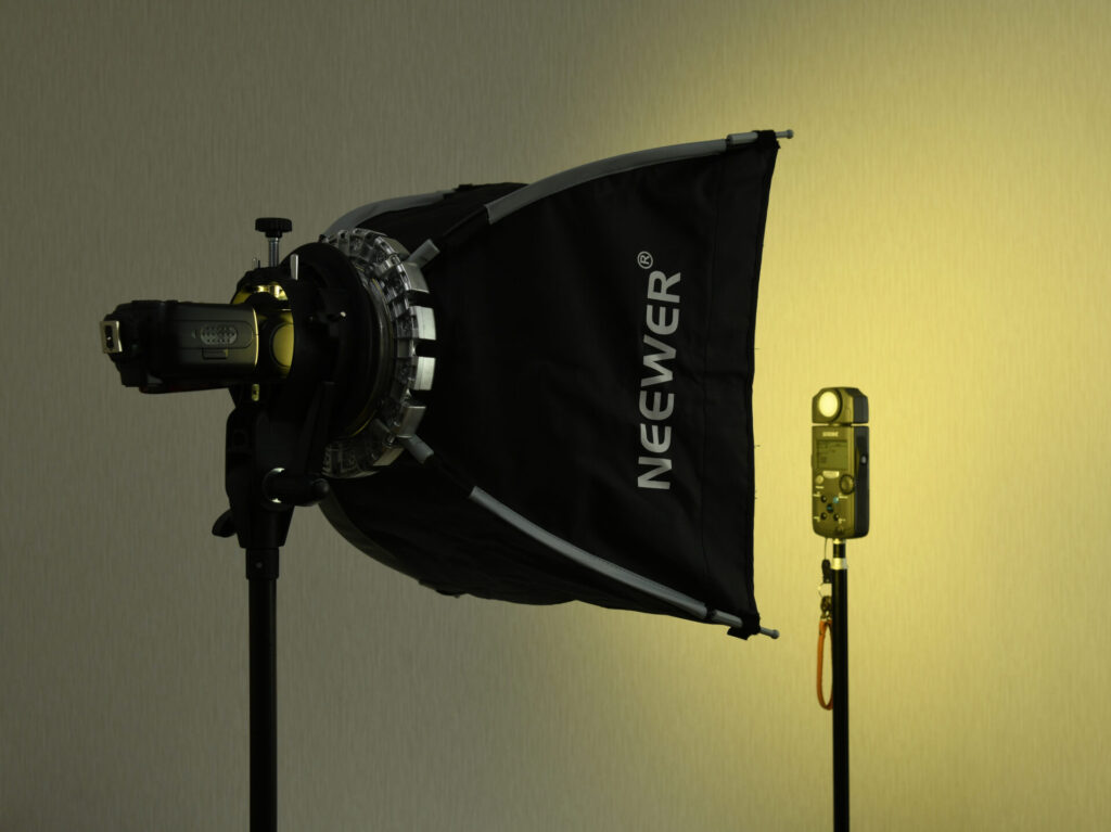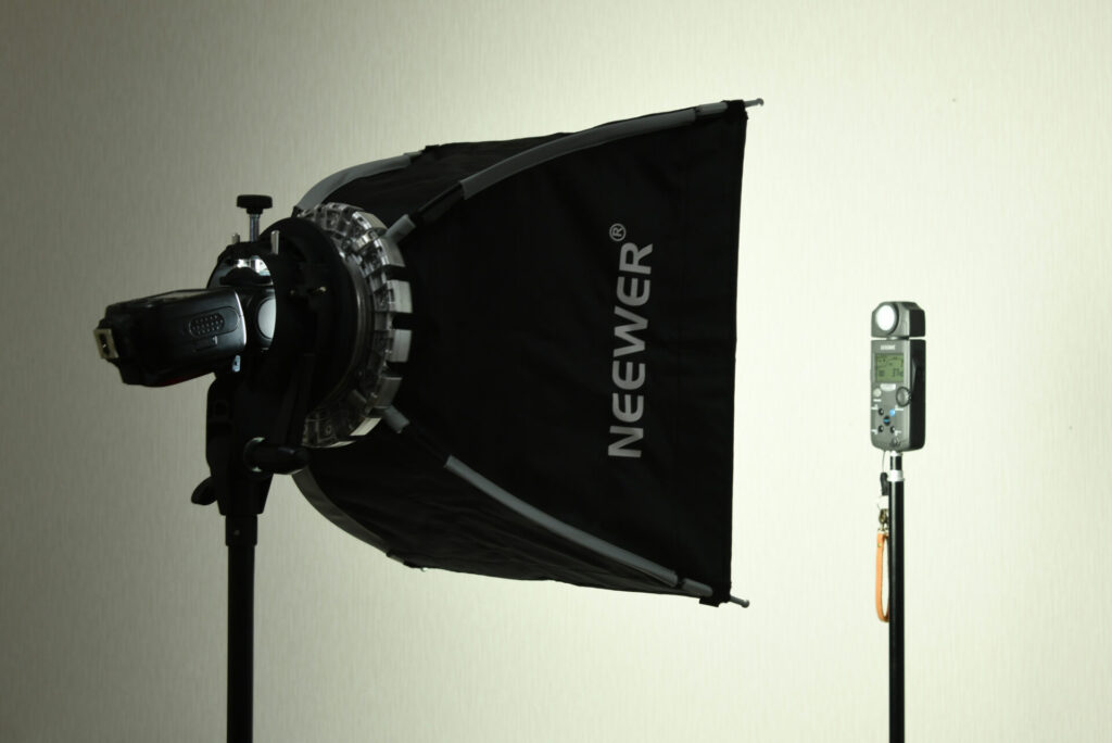 アンブレラとかソフトボックスを使った場合を想定しています。これならば反射時に光が混ざるので、色温度がムラなく均一になると思います。