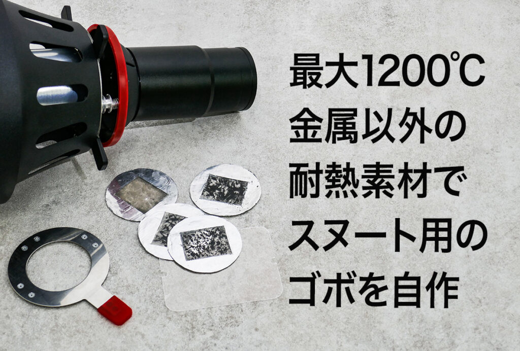 天然マイカシート(ストーブの窓)と耐熱塗料を使って、熱に強い光学スヌート用のゴボを自作する。