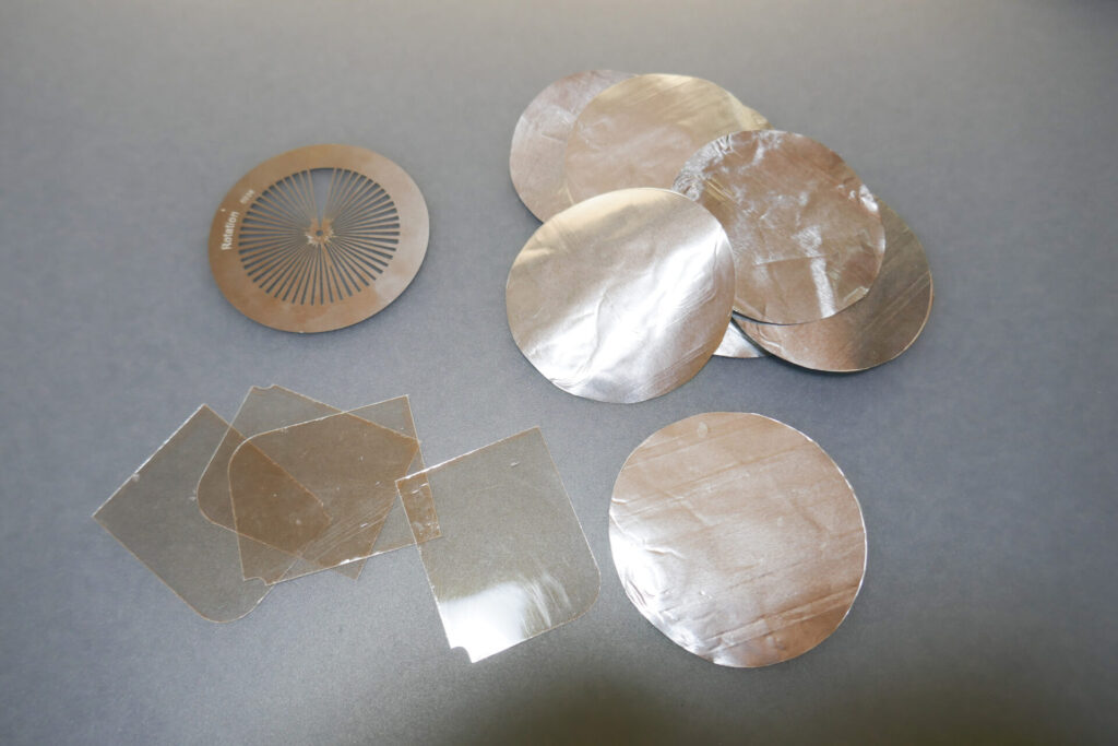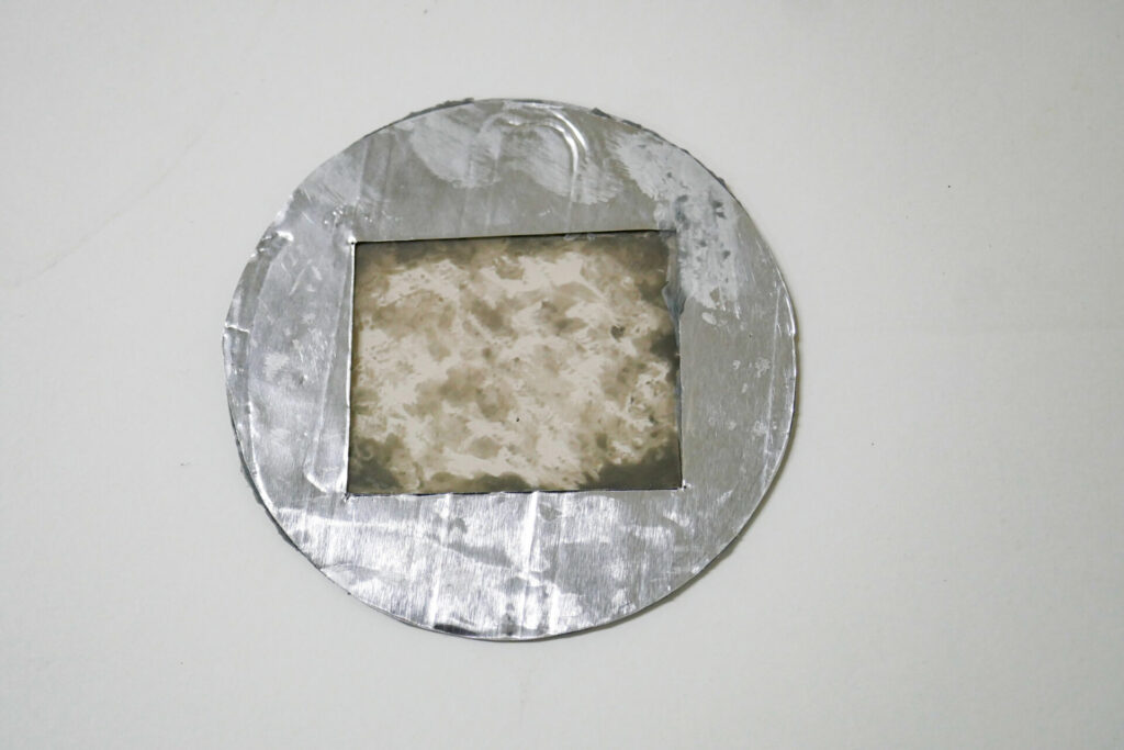 最後にマイカシート上に作ったゴボパターンをスヌートにセットしやすいよう、ドーナツ型に切り抜いた厚手のアルミホイルにサンドイッチして完成です。