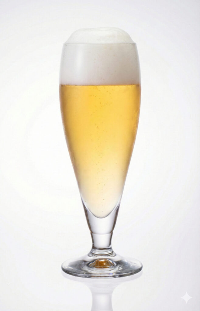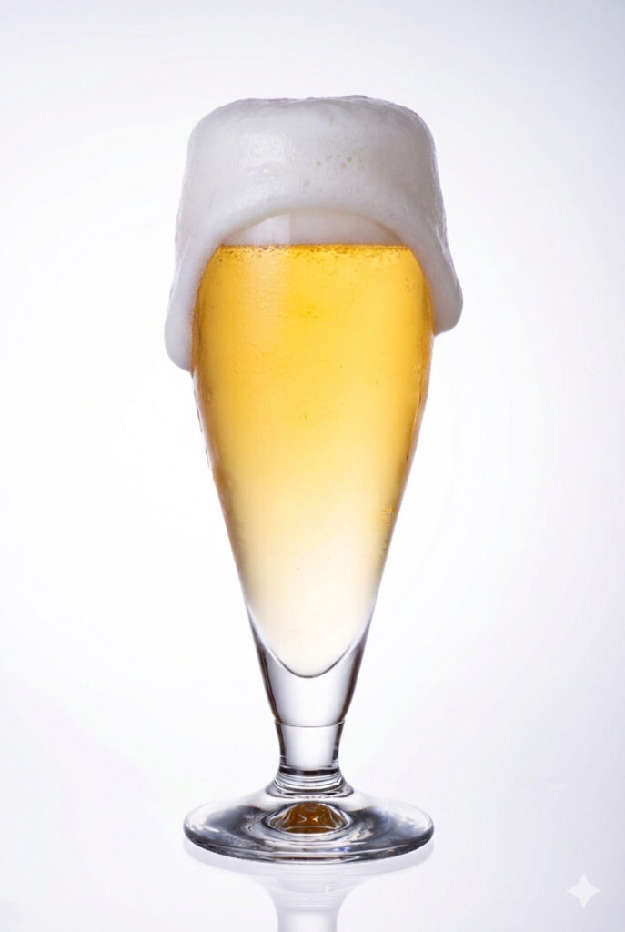 実験台はライティングに失敗した上に、泡の形がイマイチのビールカット
