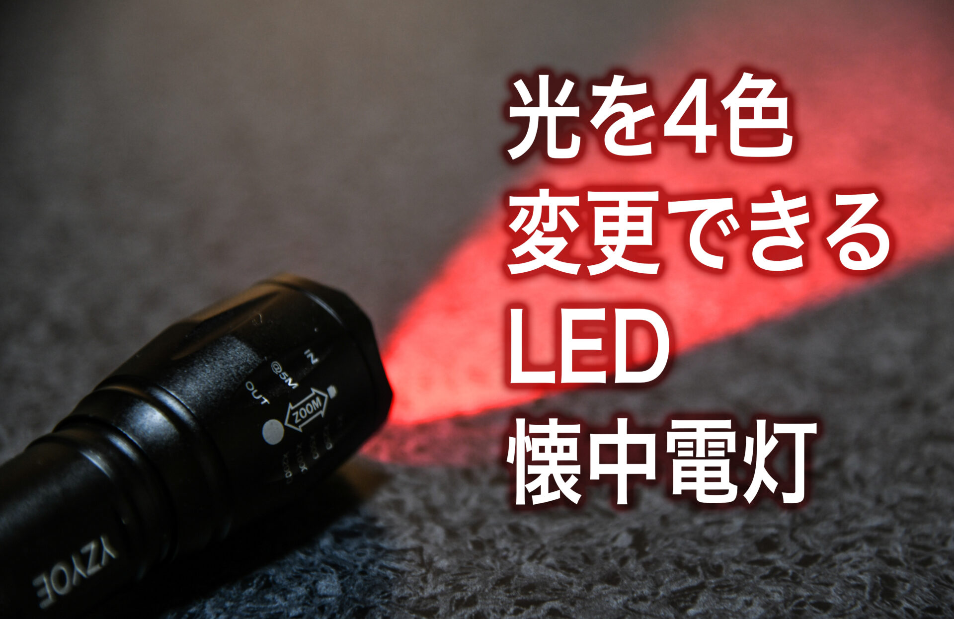 Amazonで久しぶりにブログネタ用の買い物をしました。LEDの懐中電灯なんですが、ライトの色を、白・赤・緑・青と4色に変更できます。
