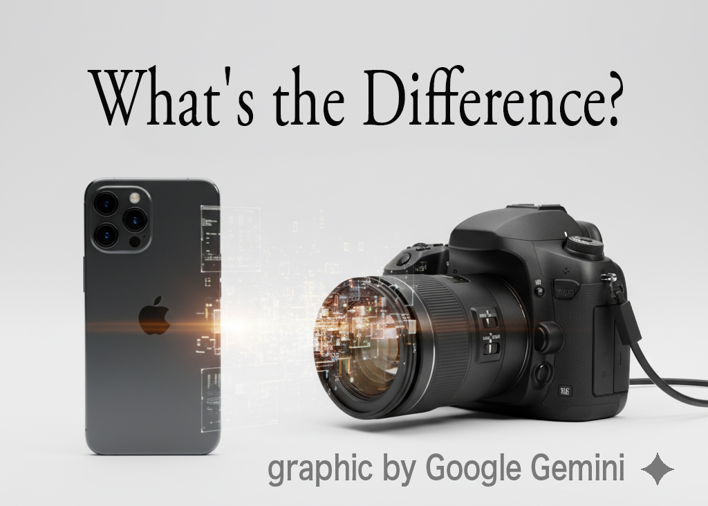情報量という視点で例えて言うなら、デジタル一眼はプールの水をプールとして撮る。スマホはコップの水をプールのように加工して見せるのが得意と言う感じ。