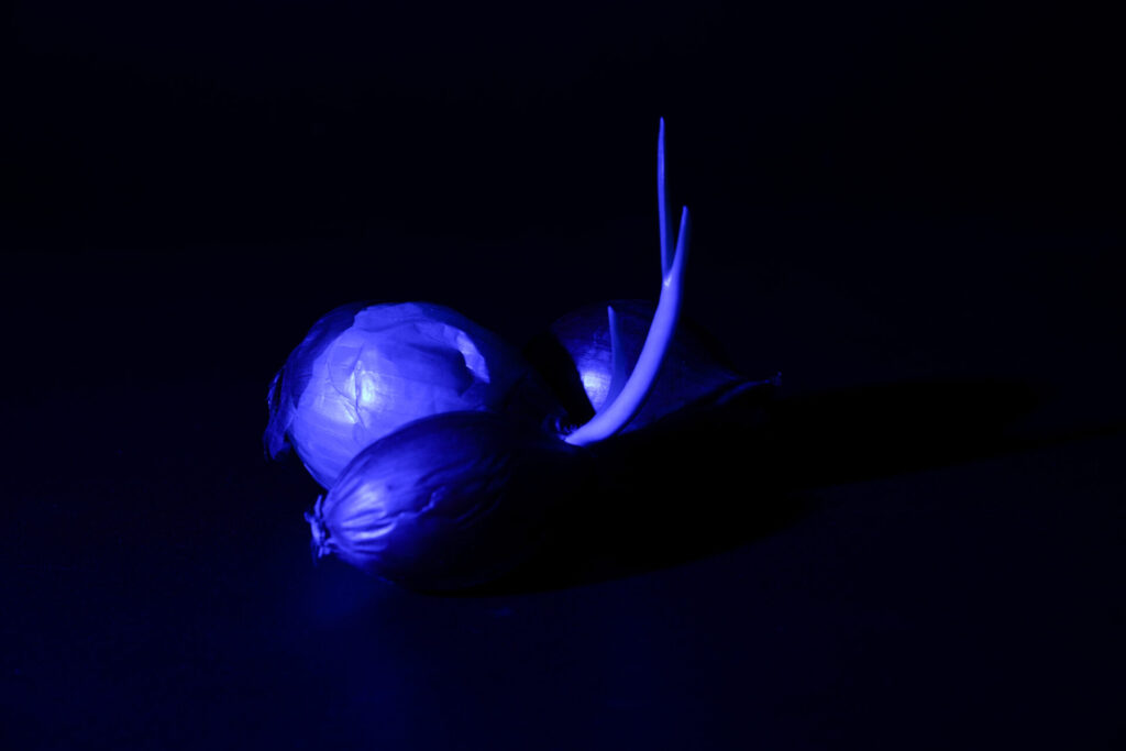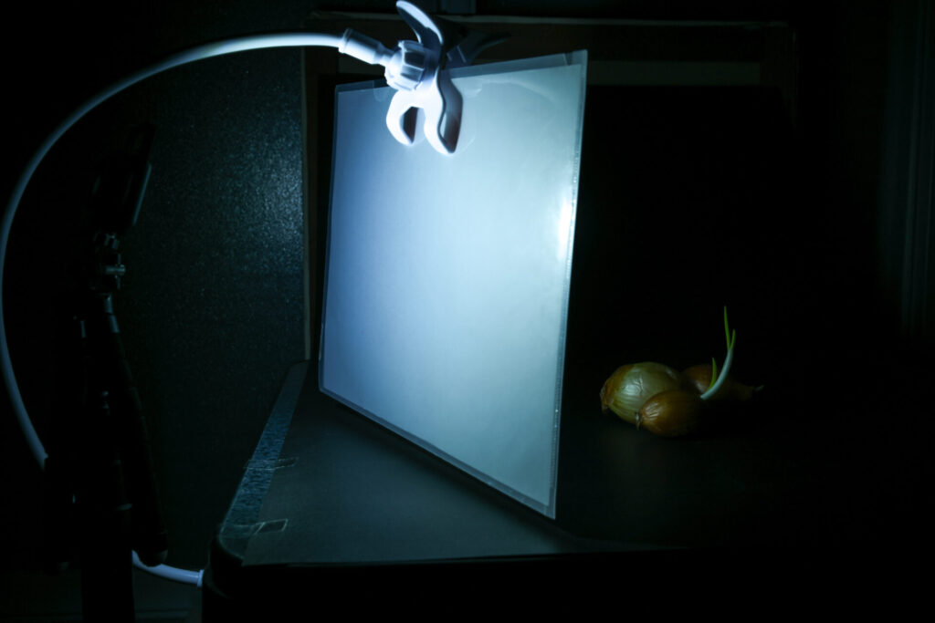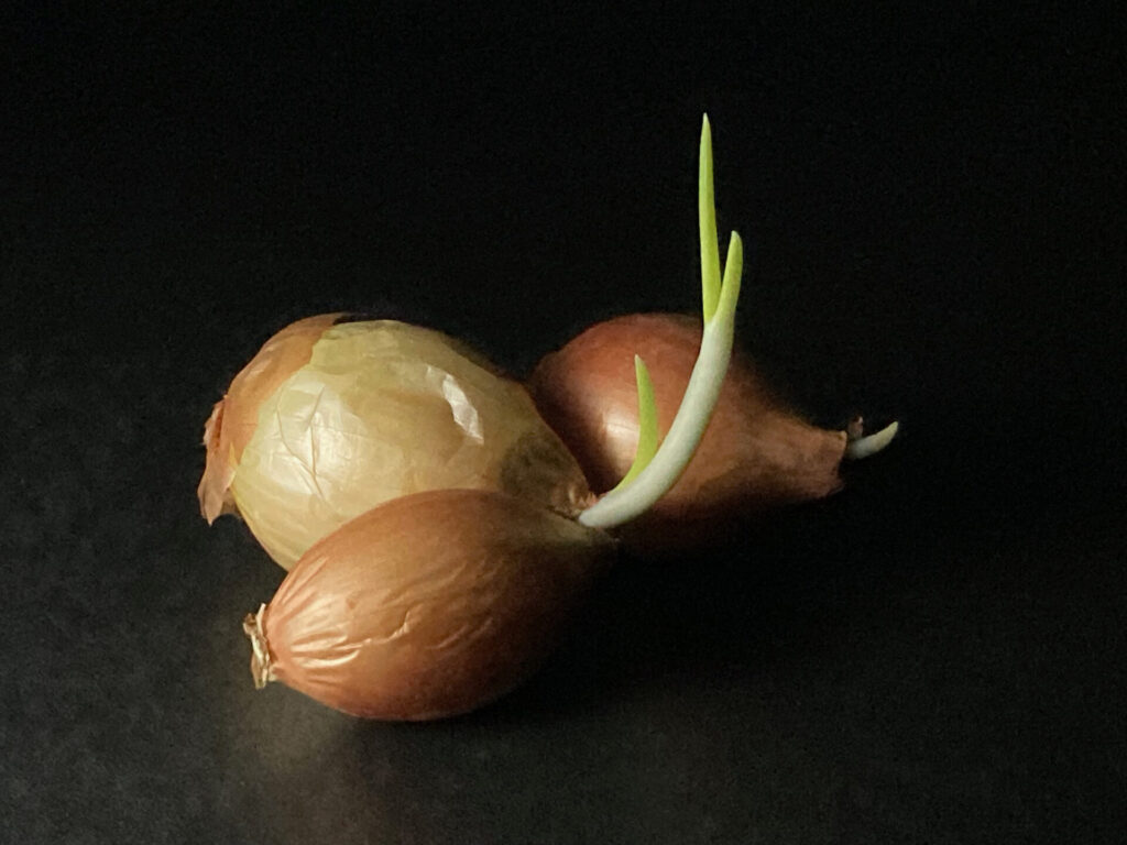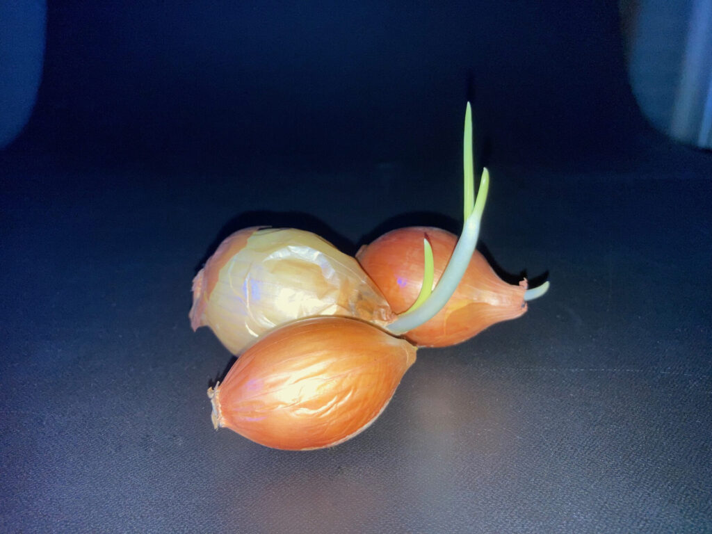 芽の出た、小さい玉ねぎです(笑)。これを白いLEDライトで撮影してみます。