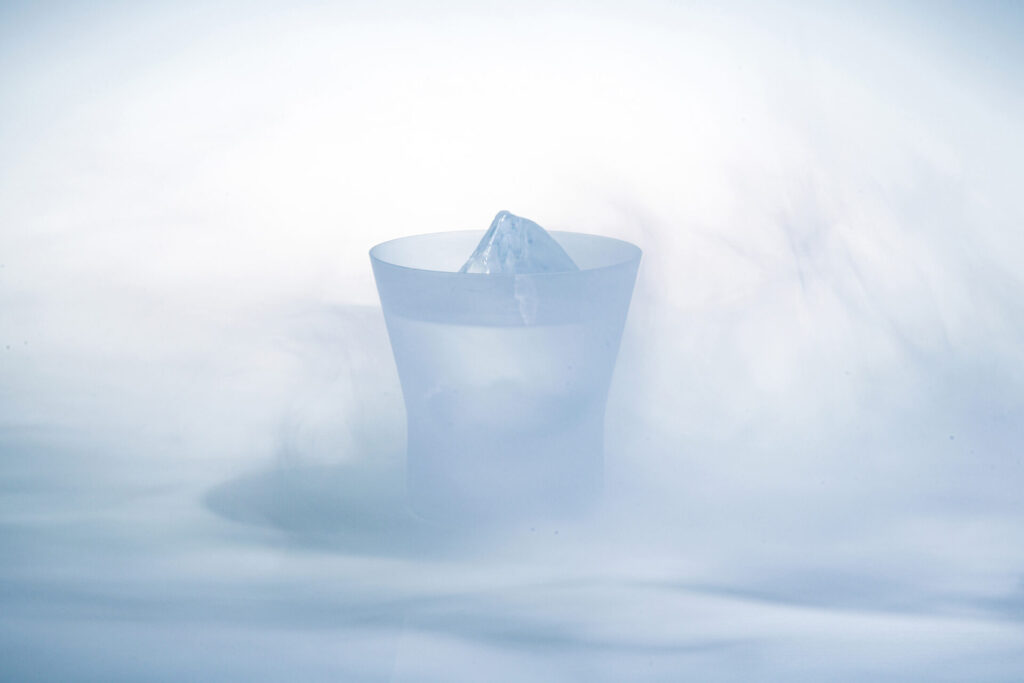 1年ほど前に、小型のスモークマシンとフロストのグラスを使って、白い背景に白いグラスというテーマでテーブルフォトを撮って記事にしたことがあります。